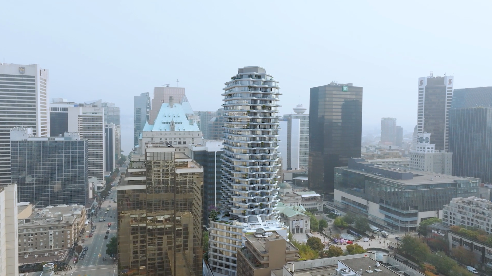 The City of Vancouver has received an application to rezone the subject site from DD (Downtown) District to CD-1 (Comprehensive Development) District. The proposal is to allow for the development of a 35-storey mixed-use building with an 11-storey podium and includes: