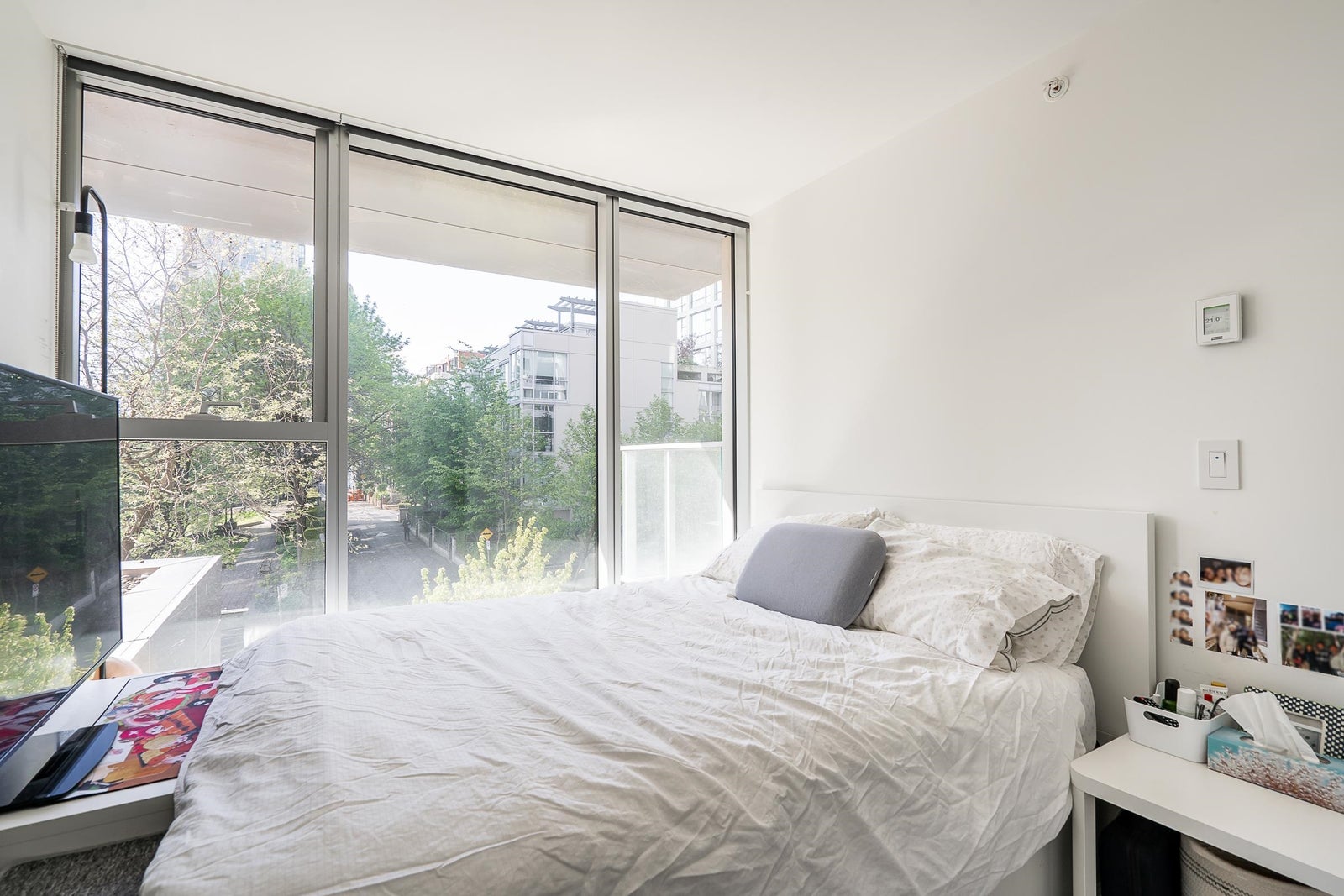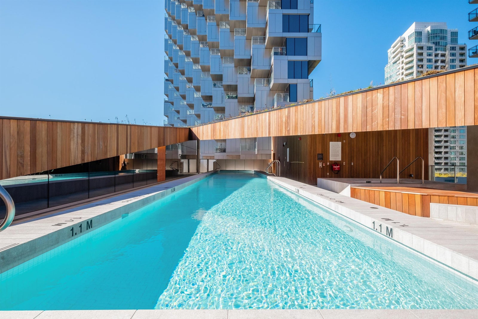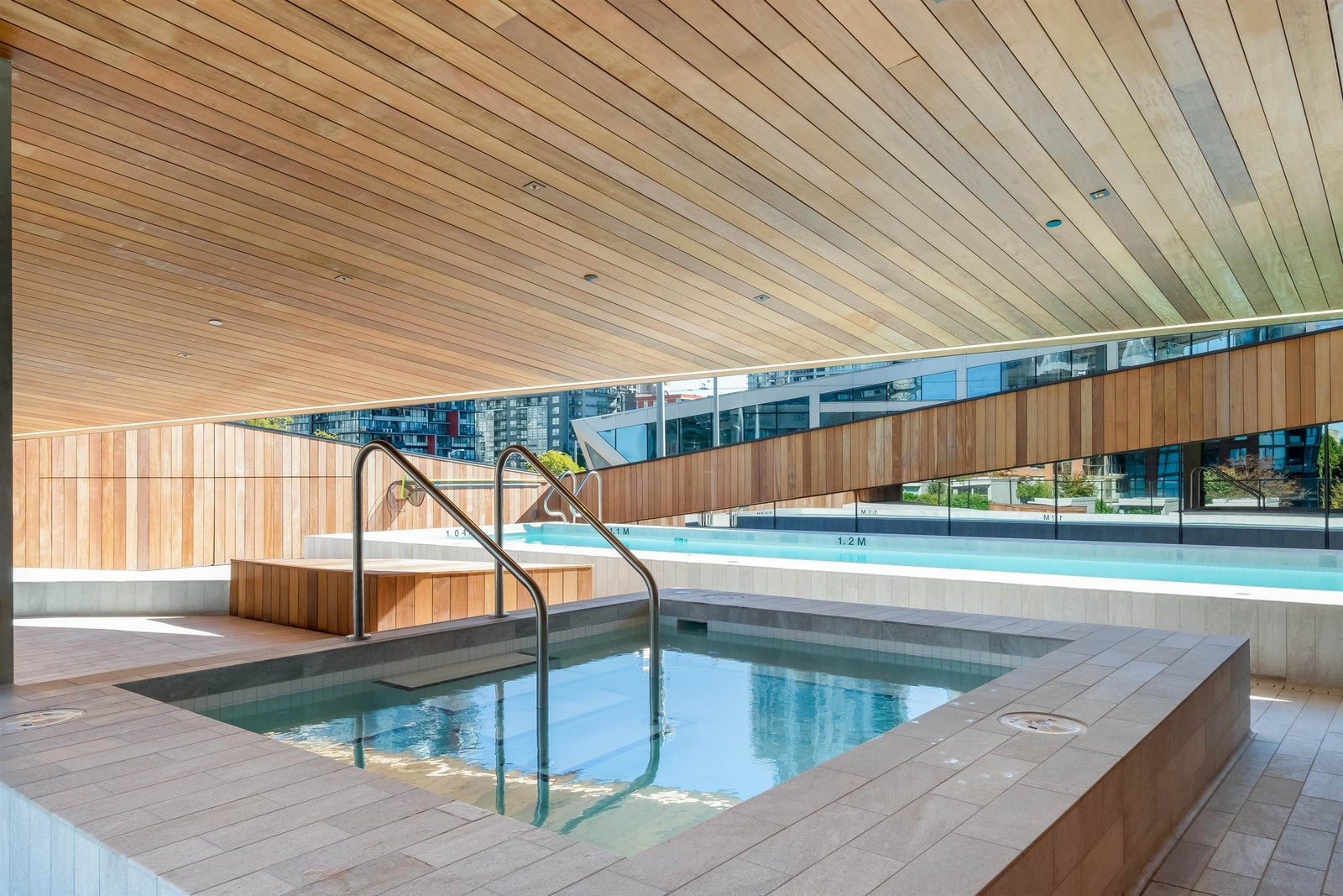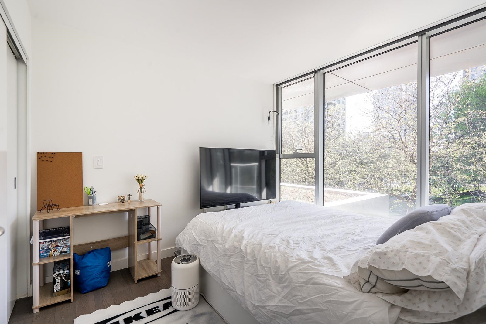 Bright & Peaceful 1-Bedroom Home by BEACH AVENUE with Large Patio Facing "May & Lorne Brown Park" & Tree Canopy at the VANCOUVER HOUSE designed by BJARKE INGELS in 2020. Steps to the Sea Wall, Modern Open layout featuring engineered light grey hardwood floors, Floor to Ceiling Windows, Built In Seamless kitchen featuring Gas Cooktop, white cabinets, quartz countertops, Copper Backsplash and Miele appliances. AIR CONDITIONING / Hydronic cooling and heating system, and access to Amazing Outdoor Pool and fitness facilities. 24 Hours Concierge, 1 Parking + 1 Storage Locker Included. Fantastic Value to own in Yaletown's Prime Waterfront Location in a New High End Architectural Landmark Building !