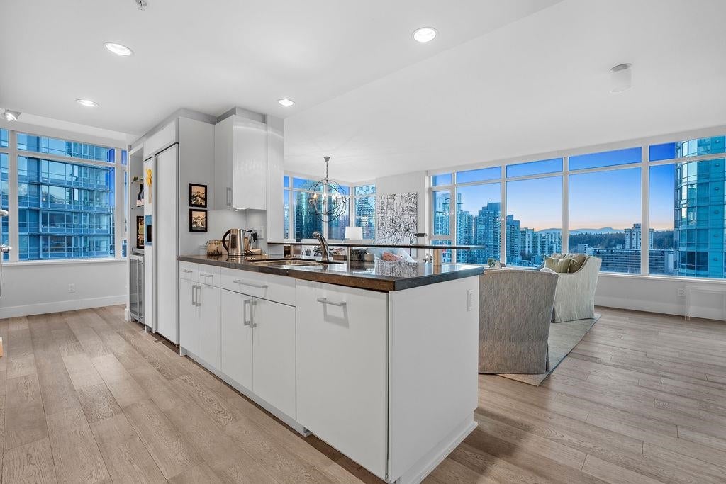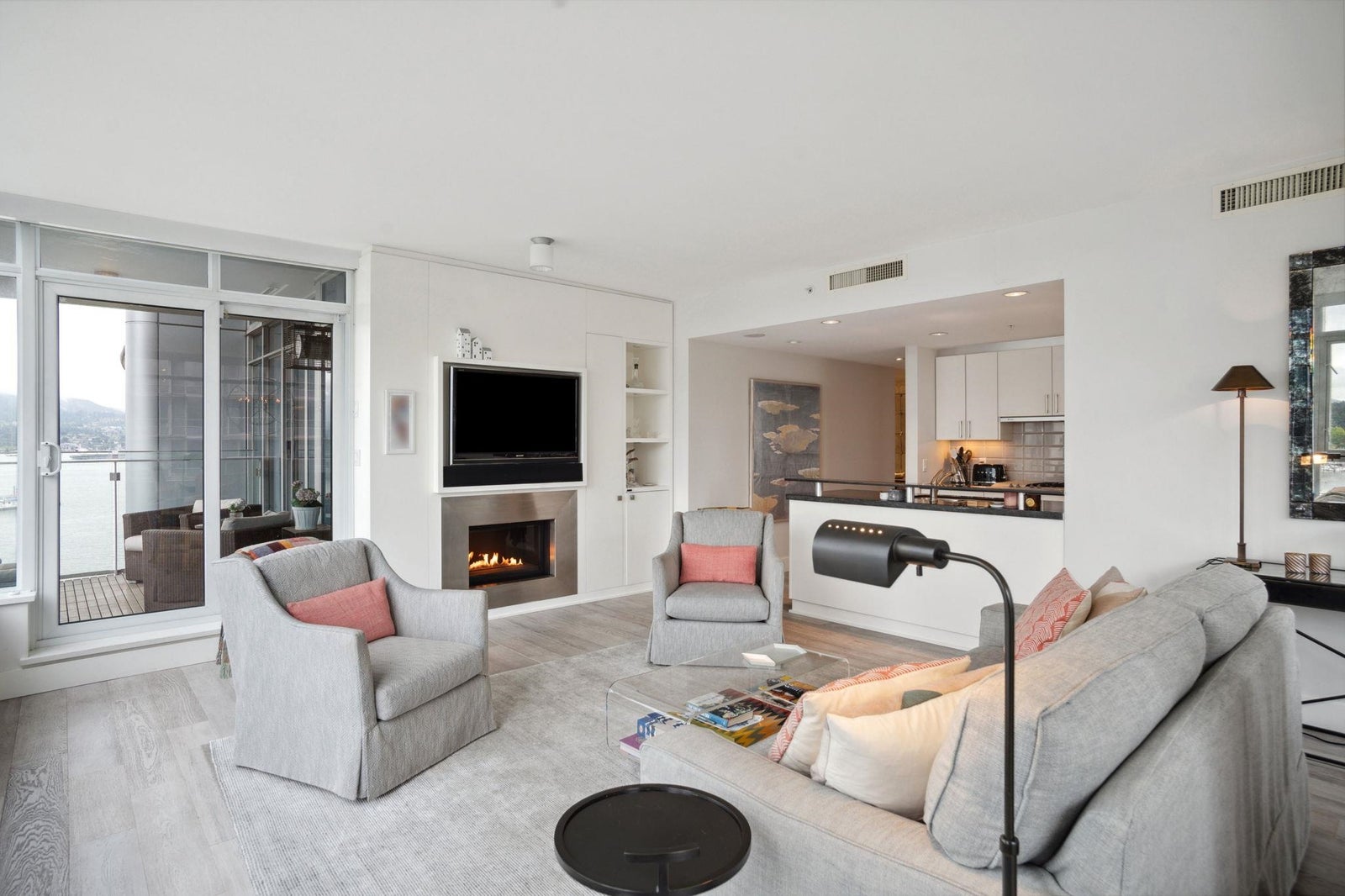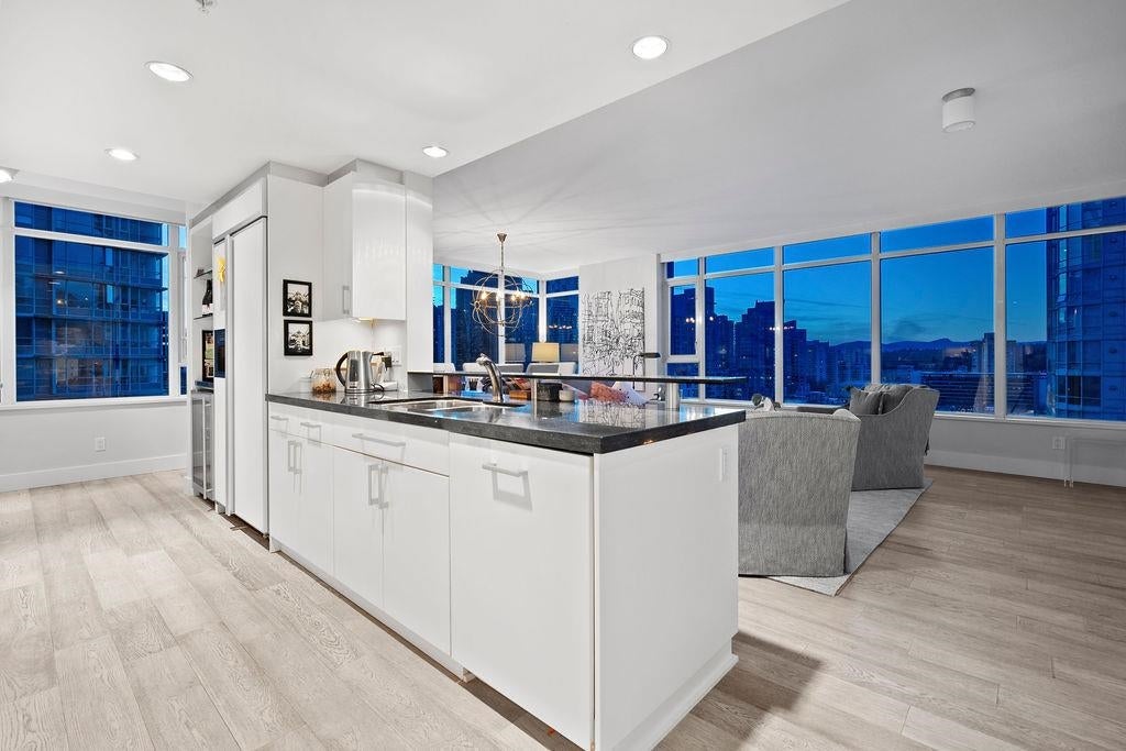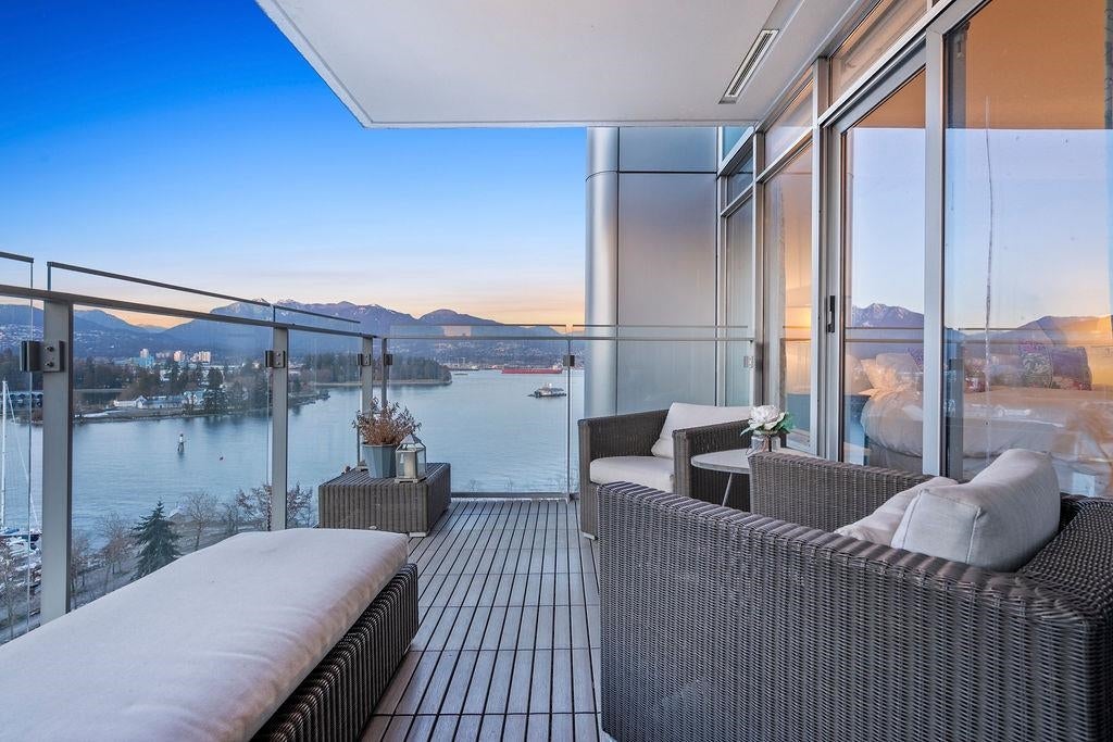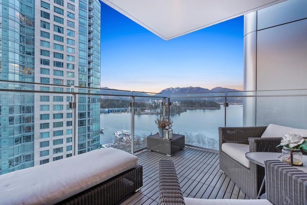 Welcome to Vancouver's iconic Callisto - where your WATERFRONT oasis awaits. Spectacular ocean & mountain vistas greet you in this 1378 sf NW corner residence on Coal Harbour's Front Row. Featuring 2 spacious bedrooms plus office, extensively upgraded kitchen, opulent primary ensuite w/deep soaker tub, central AC, custom built-ins throughout, premium hardwood flooring, & large balcony overlooking the marina & seawall. Resort-style amenities incl. indoor pool, sauna/steam, hot tub w/views, fitness centre, theatre room, & 24hr concierge. Step outside & you are minutes to Stanley Park, Canada Place, the West End, retail, fine dining & shopping. 2 parking & storage locker (in addition to in-unit storage) are conveniently yours. Don't miss this exceptional home, book your private showing today.