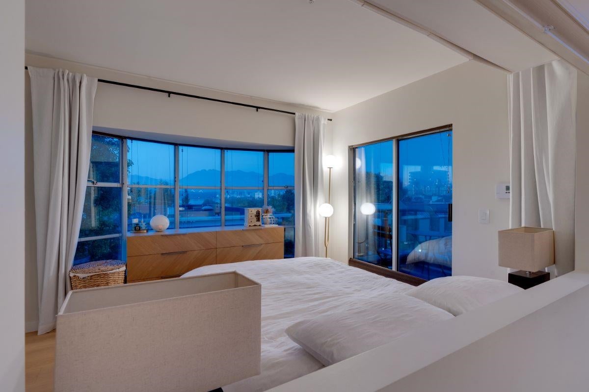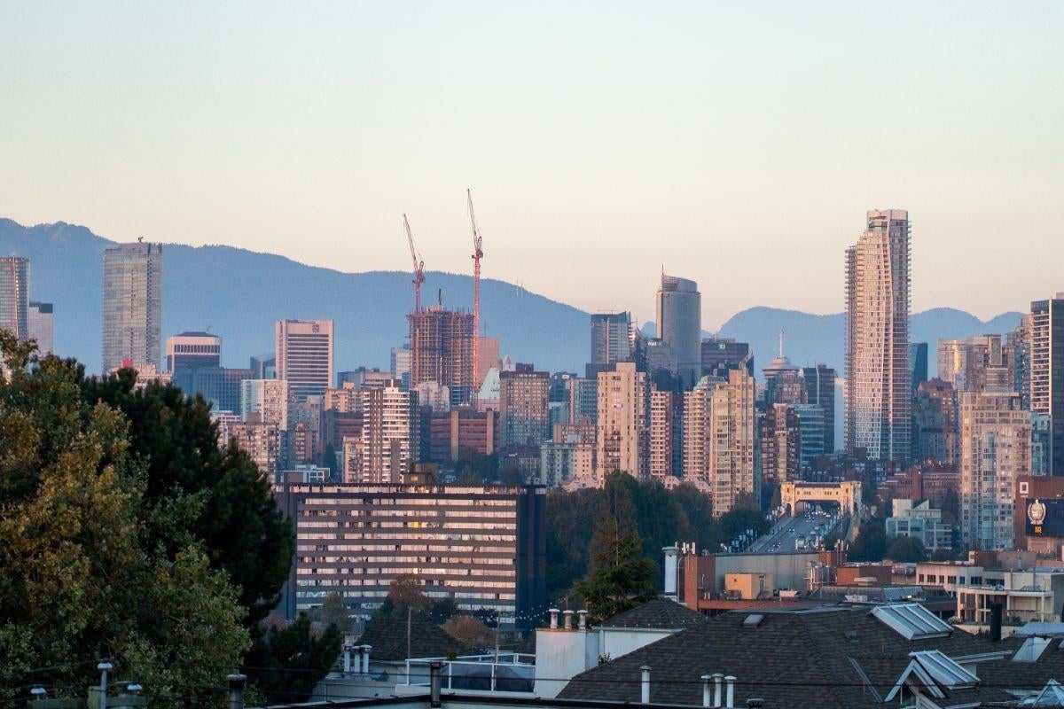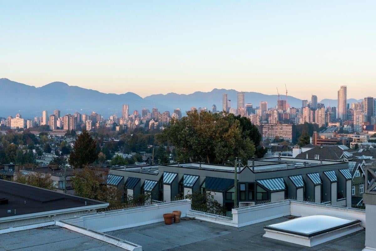 Stunning downtown, mountain, and English Bay views from this spacious, fully renovated one-bedroom penthouse-level home, perched high on the corner of West 3rd and Yew. This light-filled corner unit features soaring 9'9"" ceilings, a dramatic living room skylight, and floor-to-ceiling windows. Ideally located for the Kits lifestyle, just steps to vibrant West 4th Avenue with its shops and restaurants, plus Safeway and Whole Foods less than a block away. Nestled on a quiet residential street and only four short blocks to coveted Kits Beach. Highlights include California Closets, heated bathroom floors, smooth ceilings, and a cozy gas fireplace. One secure underground parking stall is included.