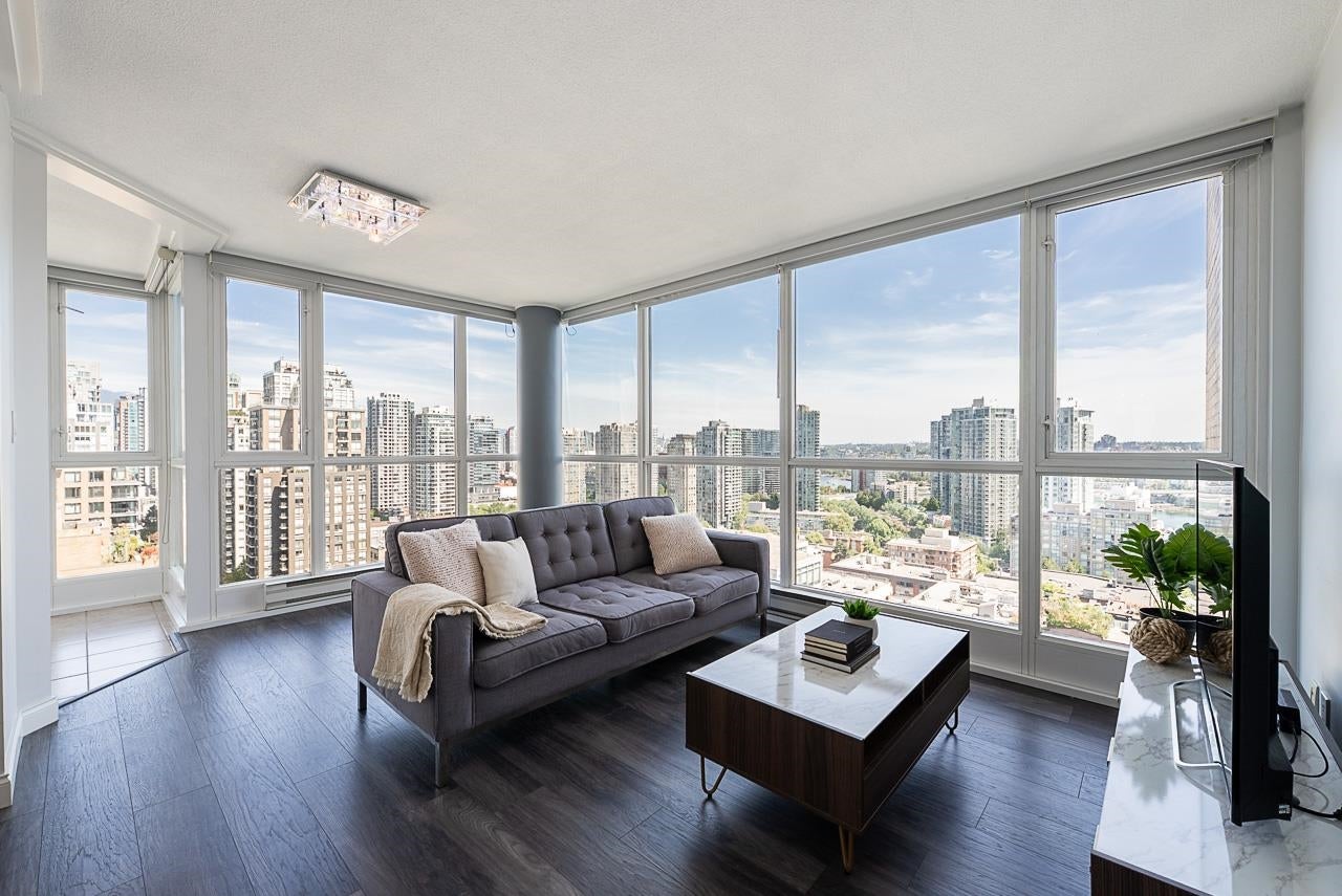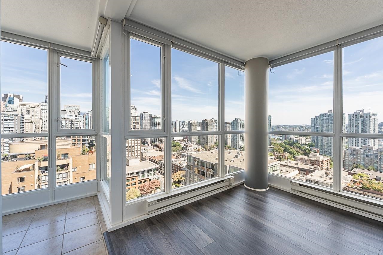 Welcome to Park Plaza! This spacious corner one-bedroom + den home is perched on the 21st floor, offering bright southeast exposure with open city views and peekaboo water outlooks. Features a smart layout, spacious kitchen, updated flooring, and in-suite storage. Fully rainscreened building with following updatesL windows (2007), re-piped (2012), modernized elevators (2014), and a refreshed lobby and updated gym (2013). EV charging is available in P1. Ideally located across from Emery Barnes Park, next door to Choices Market, and surrounded by coffee shops and restaurants. Just steps to David Lam Park, the Seawall, Yaletown shopping, and the Canada Line SkyTrain. Includes 1 parking stall. Dogs allowed. OPEN: Sept 20/21 Sat/Sun 2-4pm