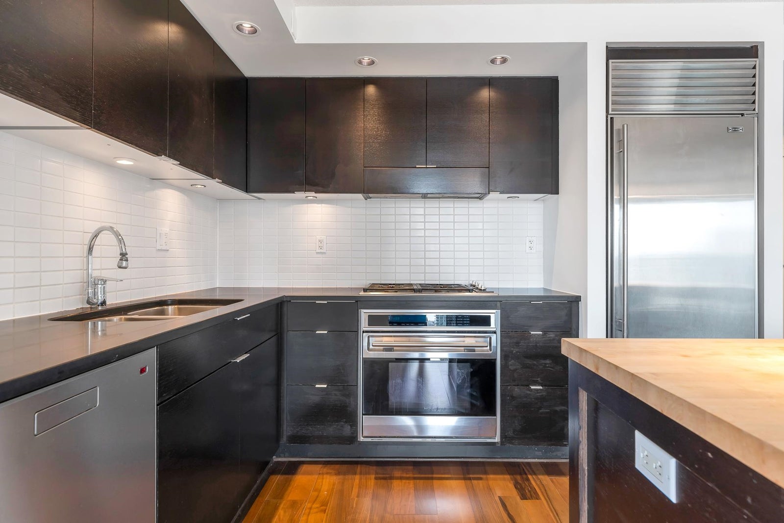 Stunning 2 bed, 2 bath executive condo in the sought-after Domus building with unobstructed views over height-restricted Yaletown to False Creek and the marina. This bright SE-facing home features the coveted 03 floor plan with spacious living/dining areas and an open gourmet kitchen with espresso stained cabinets, granite counters, high end appliances inc: wolf range and subzero fridge. The primary bedroom offers large walk through closet and spacious ensuite. Includes secure parking and access to premium amenities: gym, steam/sauna, guest suite & more. A rare view home in the heart of Yaletown!