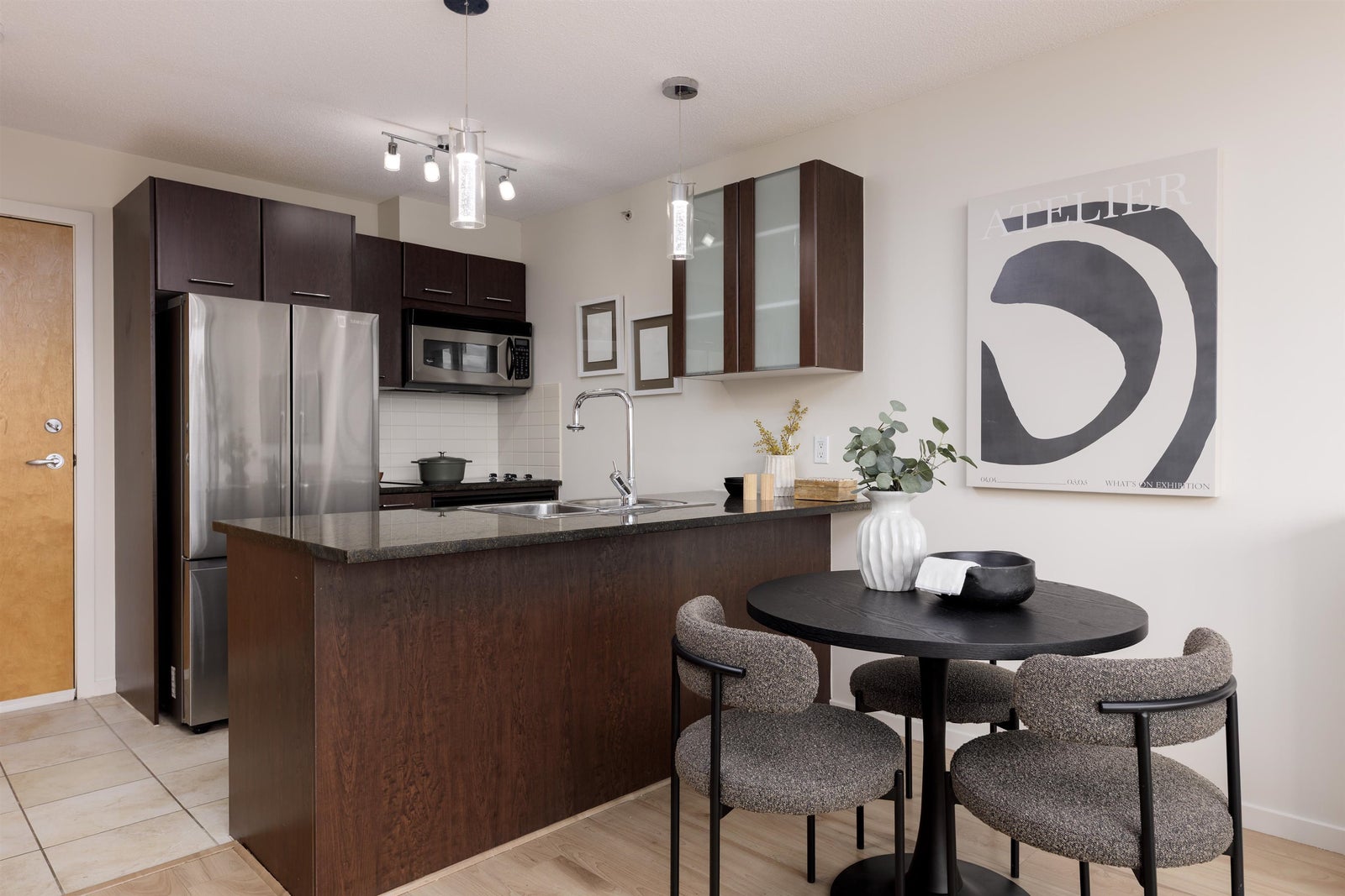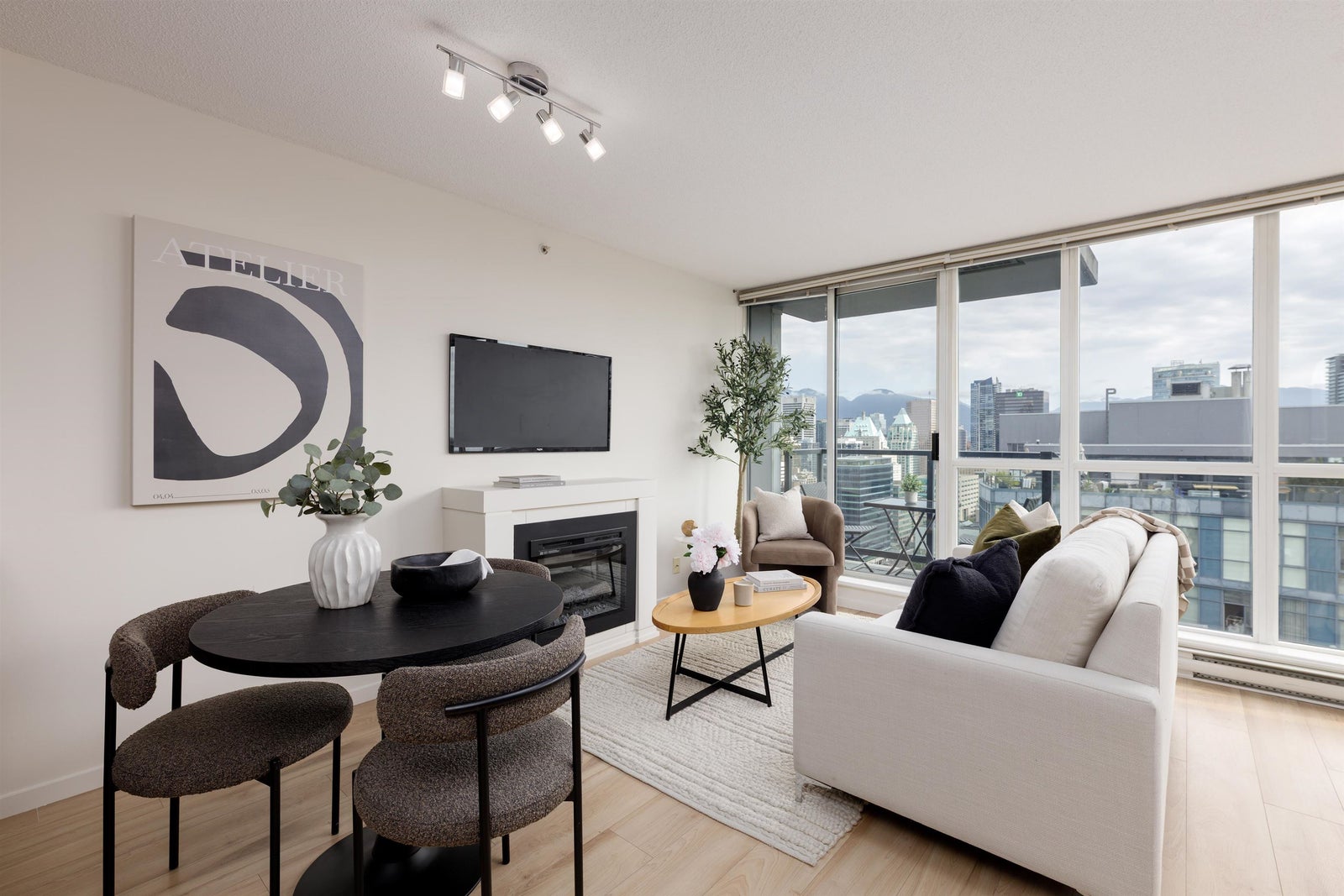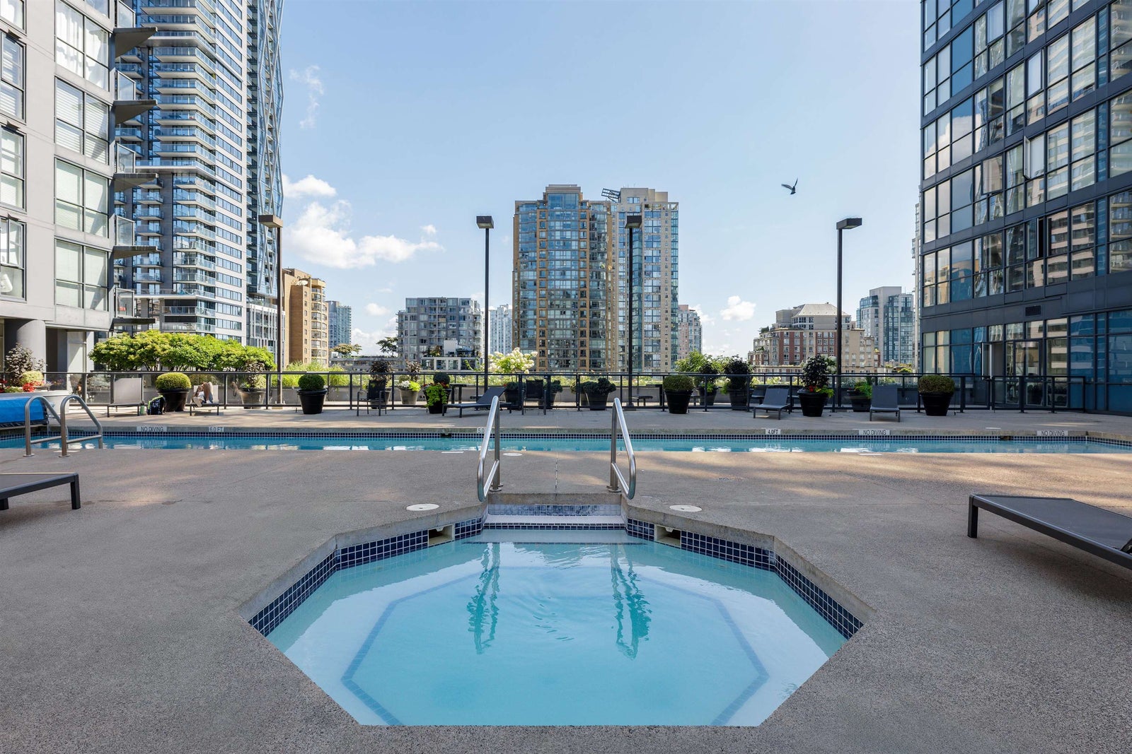 Welcome to Brava—located in the heart of Yaletown, just two blocks from the Canada Line at Yaletown-Roundhouse Station. This bright, efficiently designed studio features an open layout with no wasted space, a built-in workstation nook, and floor-to-ceiling windows showcasing vibrant city and North Shore mountain views that come alive at night—truly a rare vantage. Includes a walk-in closet, in-suite laundry, and secure underground storage. Enjoy resort-style amenities: outdoor pool, hot tub, fitness centre, steam/sauna, guest suites, media room, and 24-hour concierge. With Emery Barnes Park, restaurants, and shopping just steps away, this is downtown living at its best. Book your private showing today! Open house Saturday Oct 4th from 12:00-2:00 and Sunday Oct 5th from 2:00-4:00.