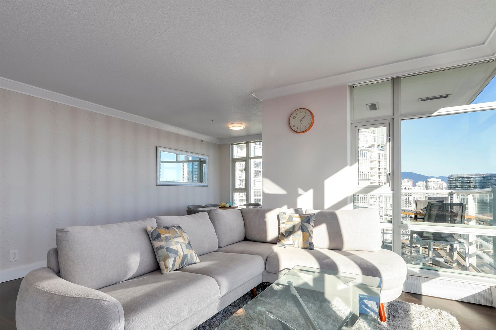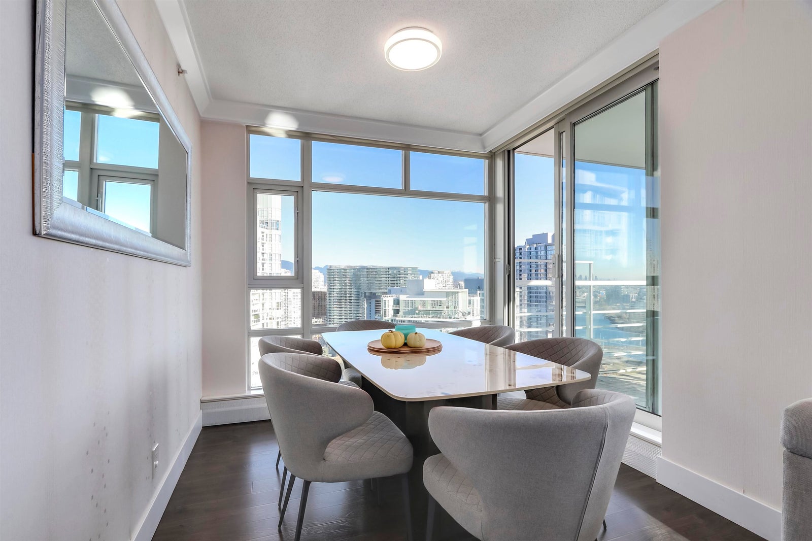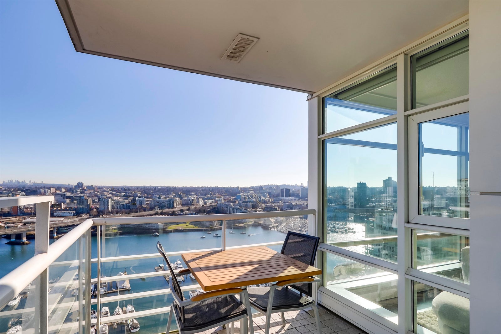 This stunning high-floor corner suite showcases breathtaking 180 degree + southeast waterfront views of False Creek, the marina, and the Seawall. Beautifully renovated 2-bedrooms + den, 2-bathroom home features a custom kitchen with quartz countertops, glass backsplash, and premium appliances. Cozy up by the granite-surround fireplace and unwind in spa-inspired bathrooms with heated floors and custom fixtures. Enjoy remote-controlled electric blinds and corner patio perfect for soaking in the views. Amenities include 24-hour concierge, gym, pool, hot tub, and Amazon parcel lockers. Ideally located above Urban Fare, steps to Yaletown's dining, shopping and the Canada Line - Marinaside living at its best.
