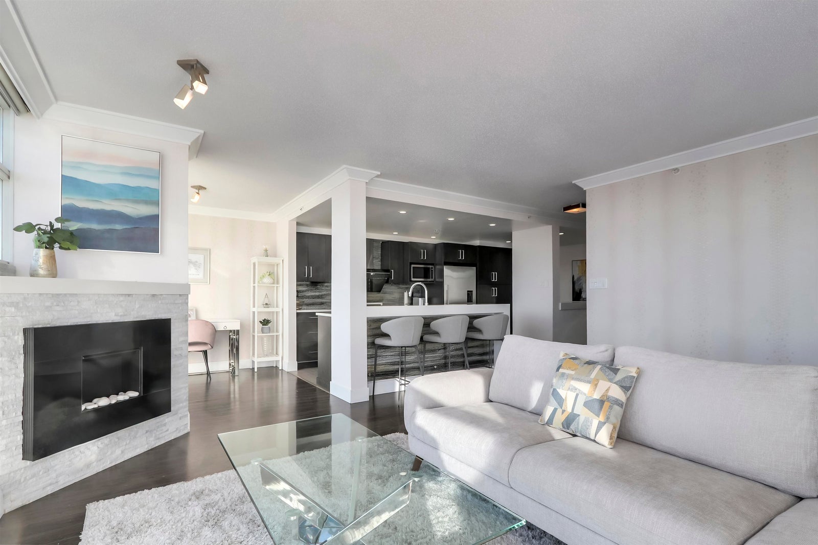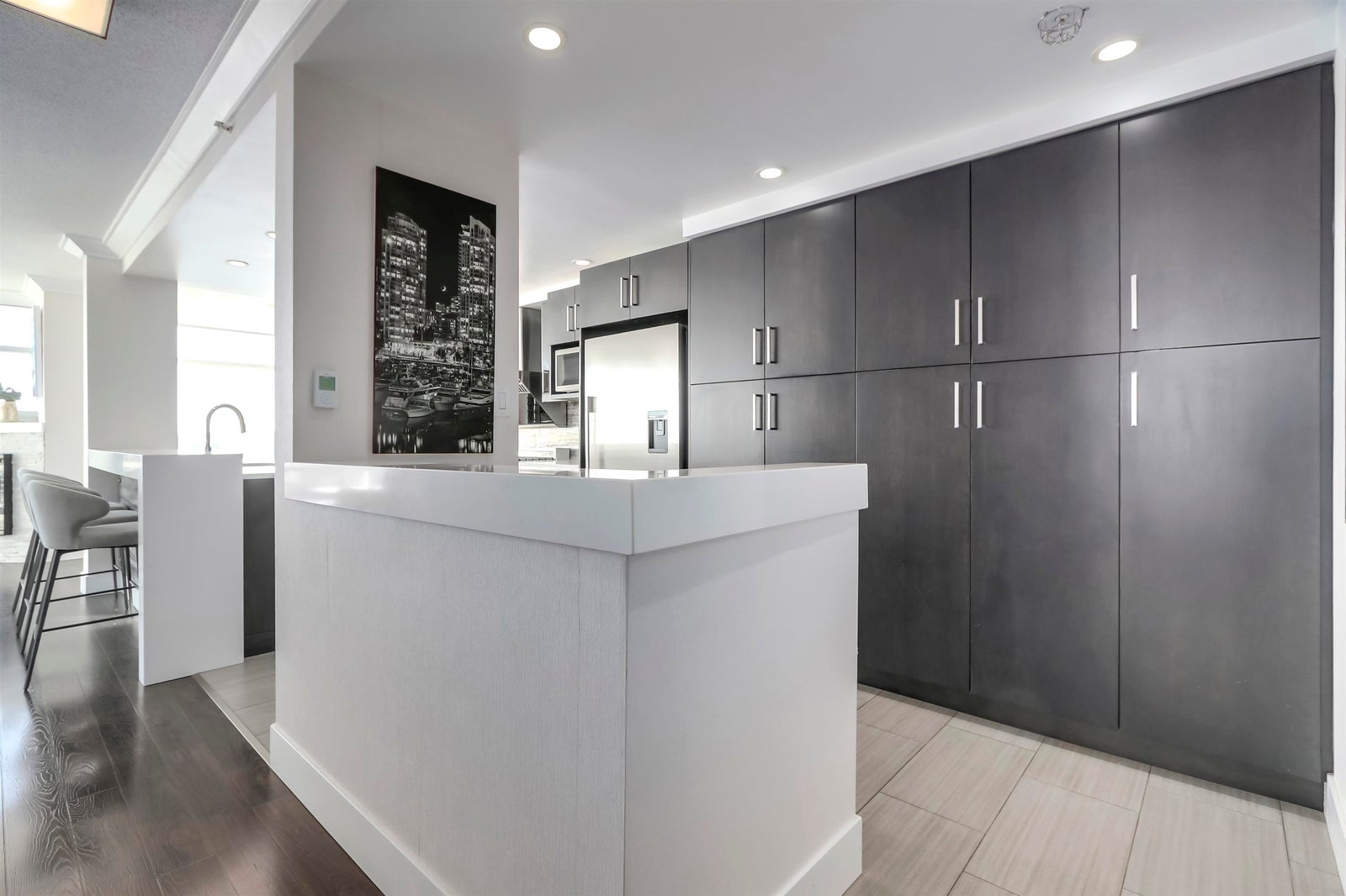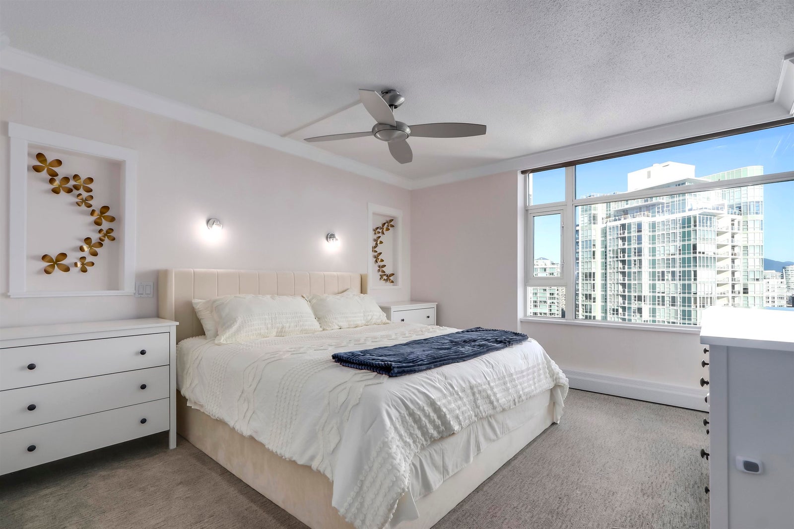 This stunning high-floor corner suite showcases breathtaking 180 degree + southeast waterfront views of False Creek, the marina, and the Seawall. Beautifully renovated 2-bedrooms + den, 2-bathroom home features a custom kitchen with quartz countertops, glass backsplash, and premium appliances. Cozy up by the granite-surround fireplace and unwind in spa-inspired bathrooms with heated floors and custom fixtures. Enjoy remote-controlled electric blinds and corner patio perfect for soaking in the views. Amenities include 24-hour concierge, gym, pool, hot tub, and Amazon parcel lockers. Ideally located above Urban Fare, steps to Yaletown's dining, shopping and the Canada Line - Marinaside living at its best.