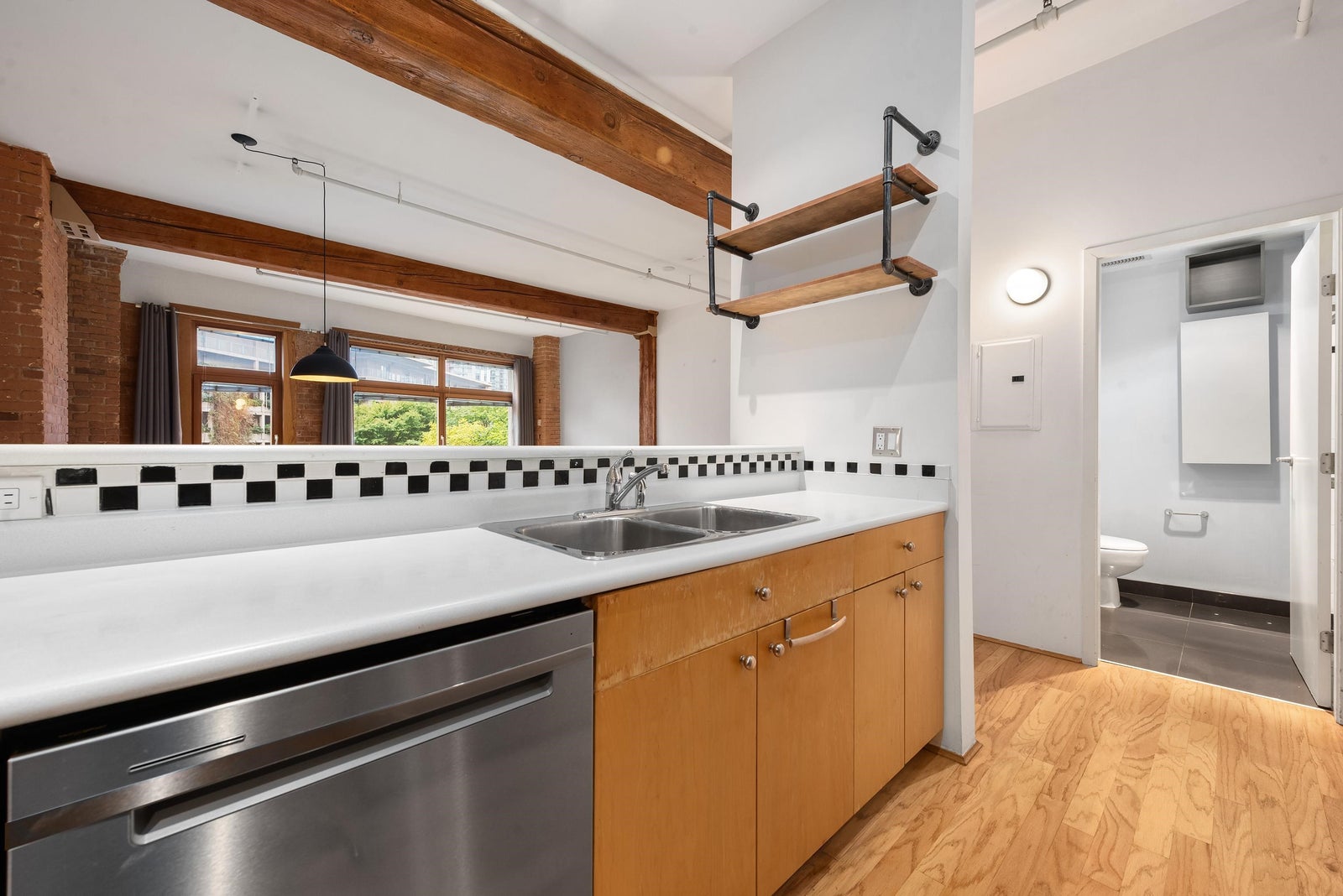 Step into this New York–inspired studio loft, offering 703 sq. ft. of thoughtfully designed living space. Showcasing exposed original brick walls, original wood beams, and 10' ceilings, this home blends industrial character with modern sophistication. The open-concept layout provides seamless flow for living, dining, and entertaining, while large European tilt & turn windows flood the space with natural light. Perfect for those who appreciate architectural charm and contemporary living in one unique, inspiring space. Centrally located in Downtown Vancouver, just one block from the SkyTrain and steps to cafés, shops, restaurants, and everyday conveniences, this loft offers the ultimate in urban lifestyle and connectivity.